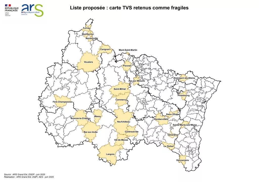 En Grand Est, 26 Territoires de vie santé (TVS) sont considérés comme fragiles.
